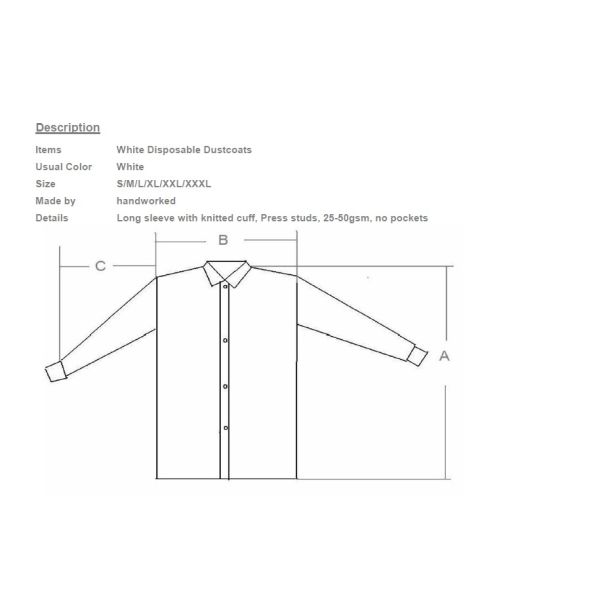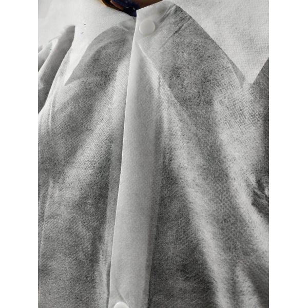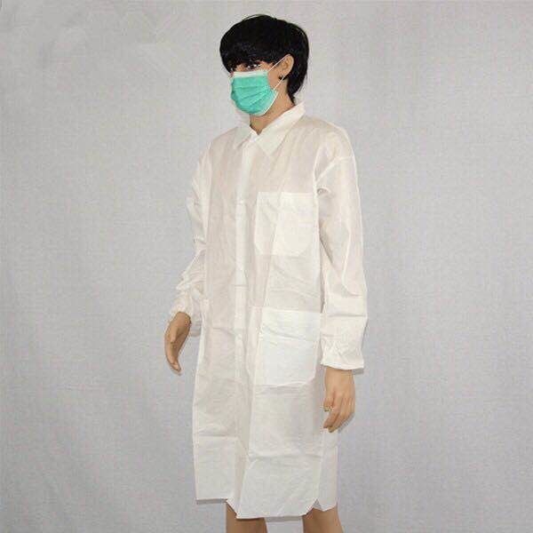 Nonwoven lab coat can be used in hospital, laboratory, Outdoor antivirus activities, electronic manufactures, any where need protection. Prevent and isolate dust, particle, alcohol, blood, bacteria and virus invading. Can be used as a visit protection.Prevent to cross infection in medical treatment at sanitation field. Economical and disposable. According with the hygienic standard.