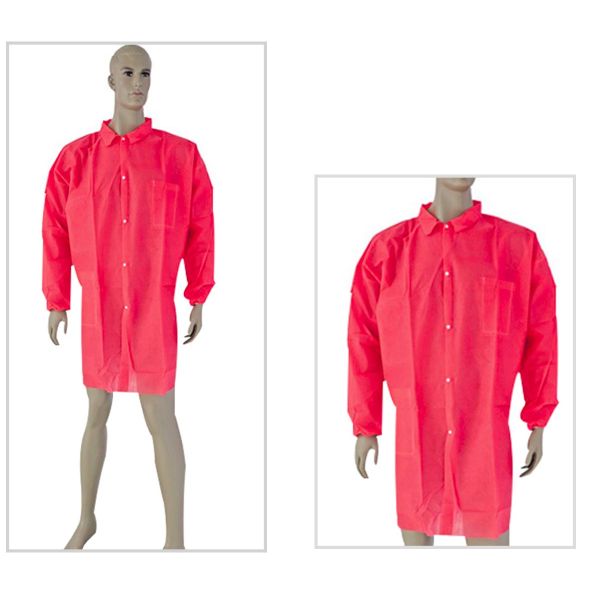 Disposable Red Color Clean Room Button Front Short Sleeve Lab Coats